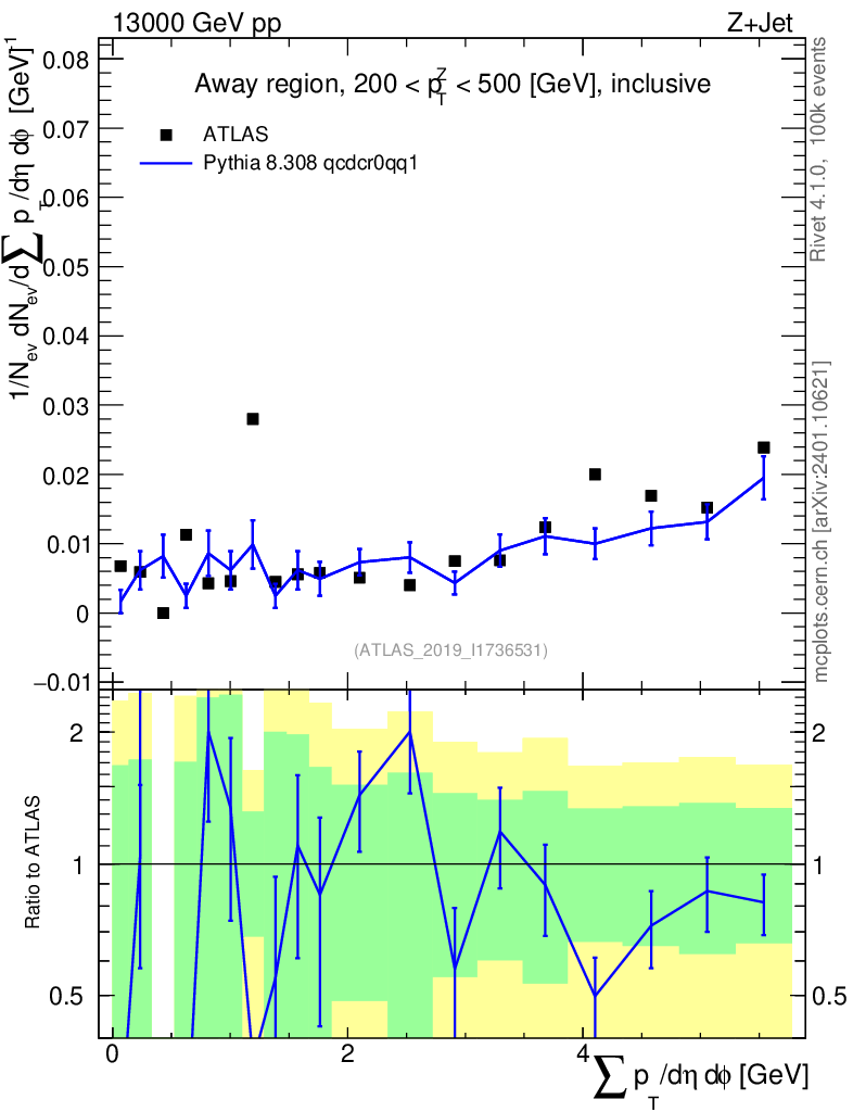 Lines: data, pythia8 8.308 qcdcr0qq1 |