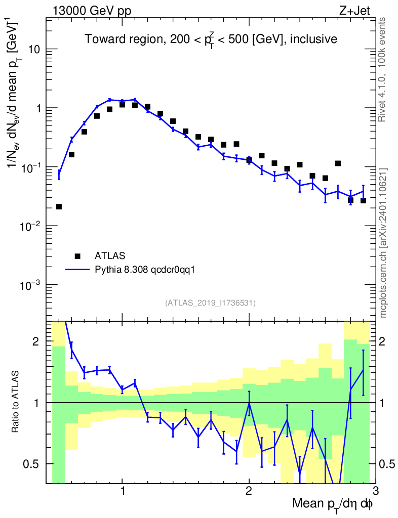 Lines: data, pythia8 8.308 qcdcr0qq1 |