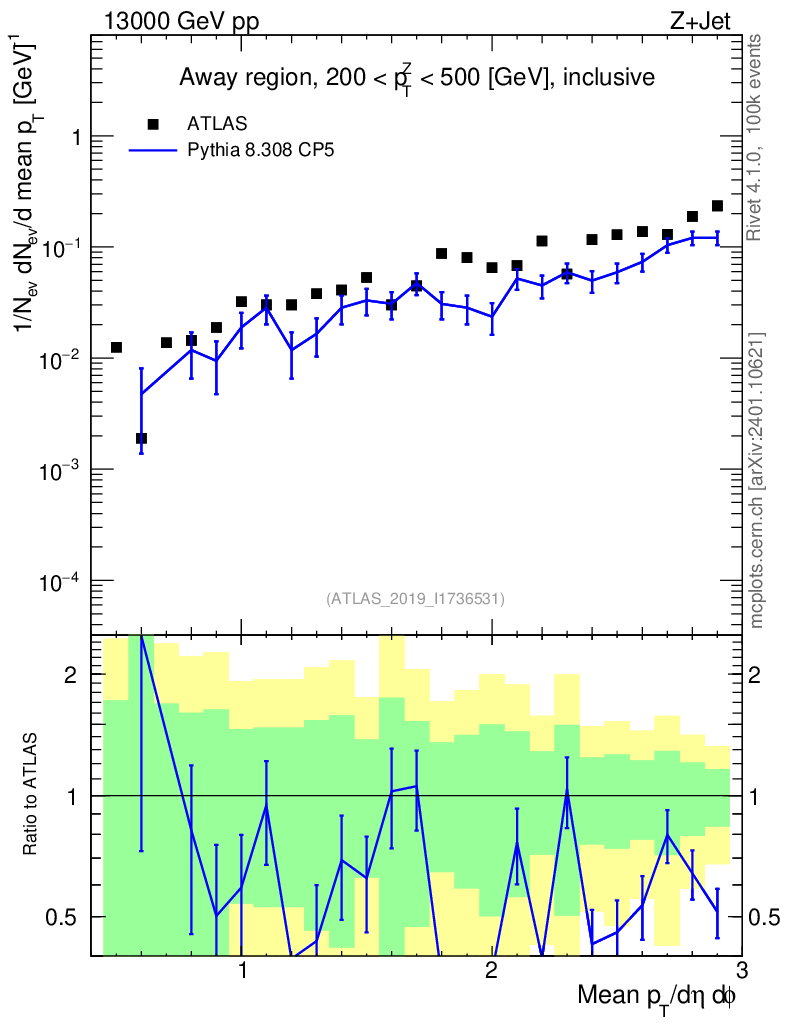 Lines: data, pythia8 8.308 CP5 |