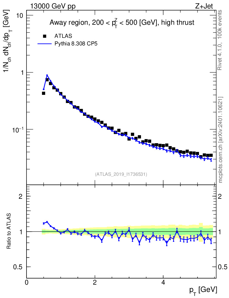 Lines: data, pythia8 8.308 CP5 |