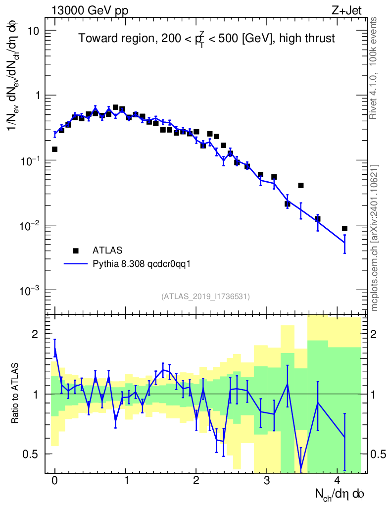 Lines: data, pythia8 8.308 qcdcr0qq1 |
