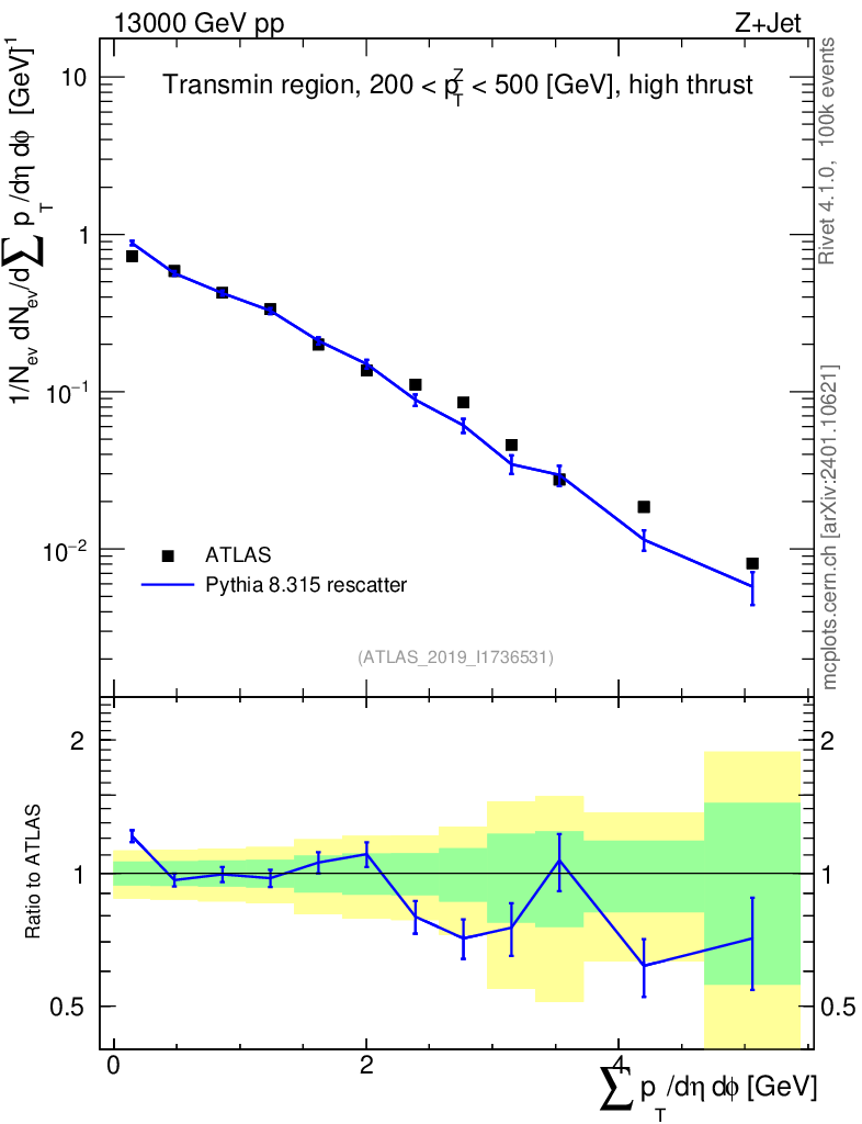 Lines: data, pythia8 8.315 rescatter |