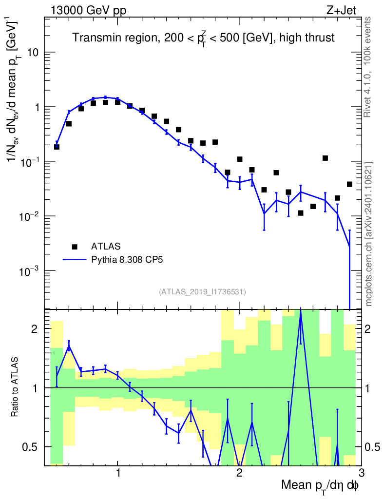 Lines: data, pythia8 8.308 CP5 |