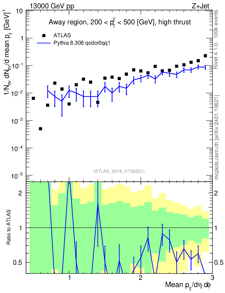 Lines: data, pythia8 8.308 qcdcr0qq1 |