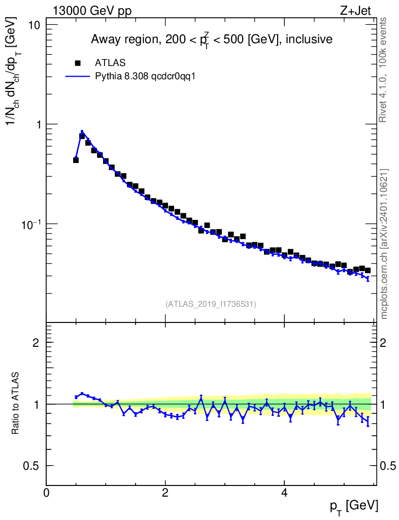 Lines: data, pythia8 8.308 qcdcr0qq1 |