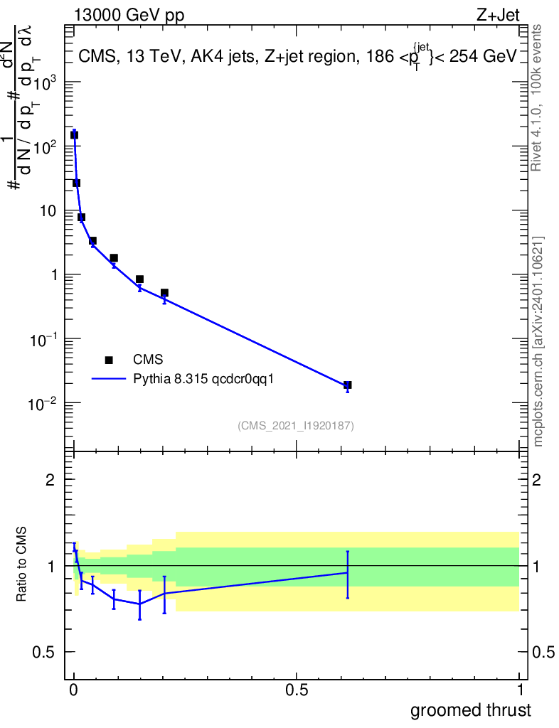 Lines: data, pythia8 8.315 qcdcr0qq1 |