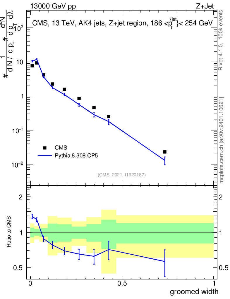Lines: data, pythia8 8.308 CP5 |