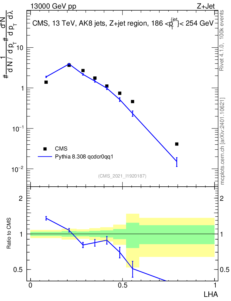 Lines: data, pythia8 8.308 qcdcr0qq1 |