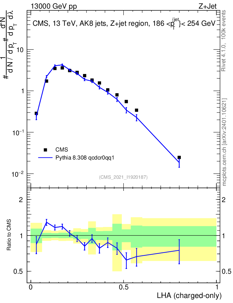 Lines: data, pythia8 8.308 qcdcr0qq1 |