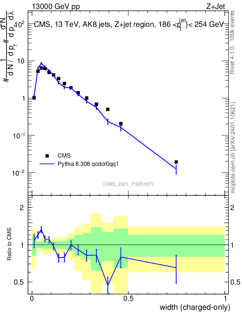 Lines: data, pythia8 8.308 qcdcr0qq1 |