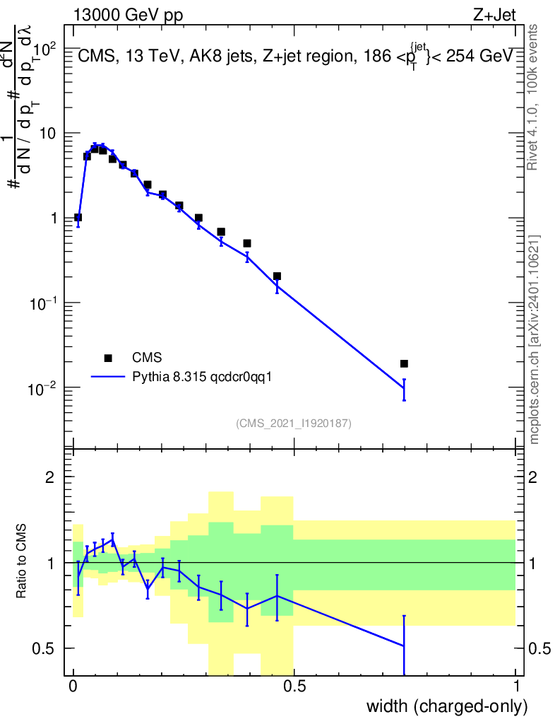 Lines: data, pythia8 8.315 qcdcr0qq1 |