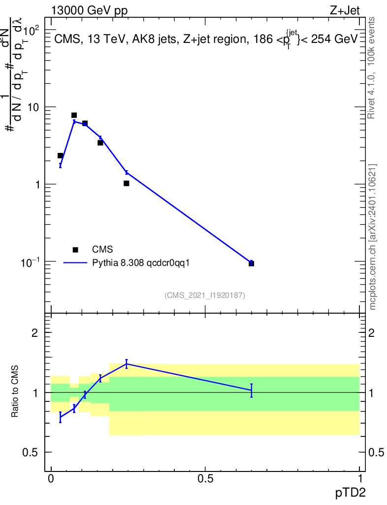 Lines: data, pythia8 8.308 qcdcr0qq1 |