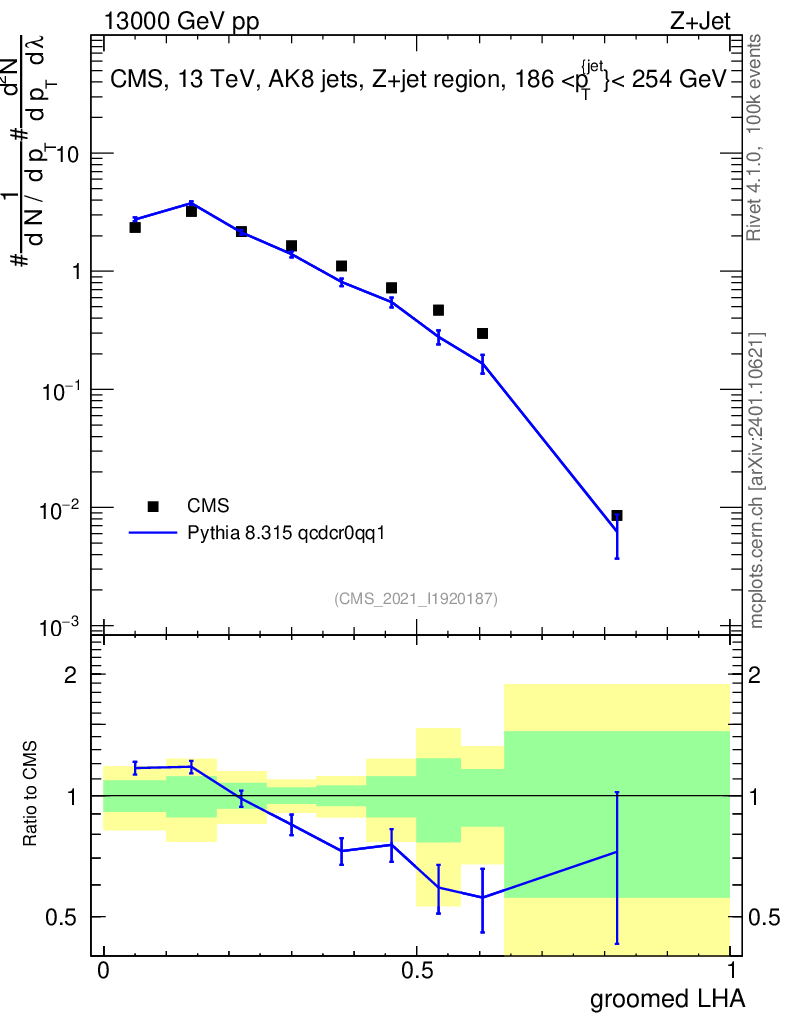 Lines: data, pythia8 8.315 qcdcr0qq1 |