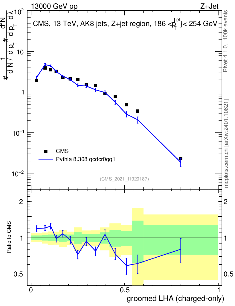 Lines: data, pythia8 8.308 qcdcr0qq1 |
