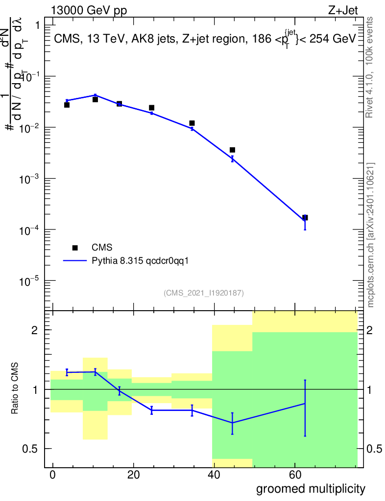 Lines: data, pythia8 8.315 qcdcr0qq1 |