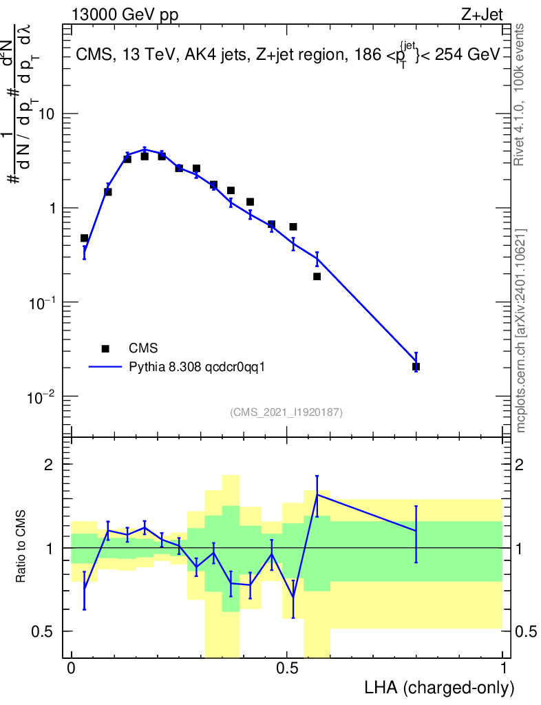 Lines: data, pythia8 8.308 qcdcr0qq1 |