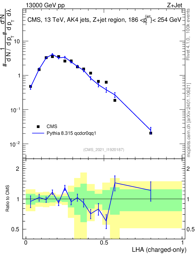 Lines: data, pythia8 8.315 qcdcr0qq1 |