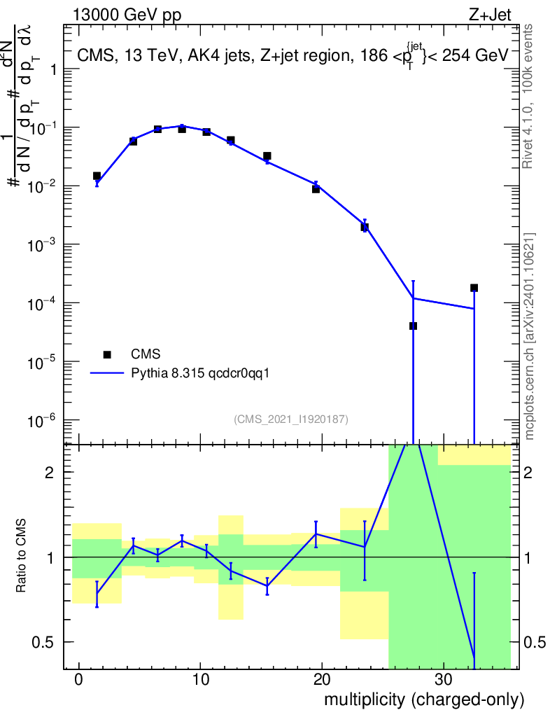 Lines: data, pythia8 8.315 qcdcr0qq1 |