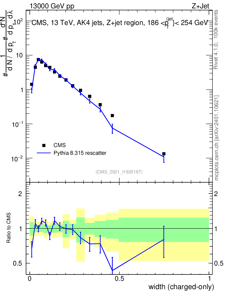 Lines: data, pythia8 8.315 rescatter |