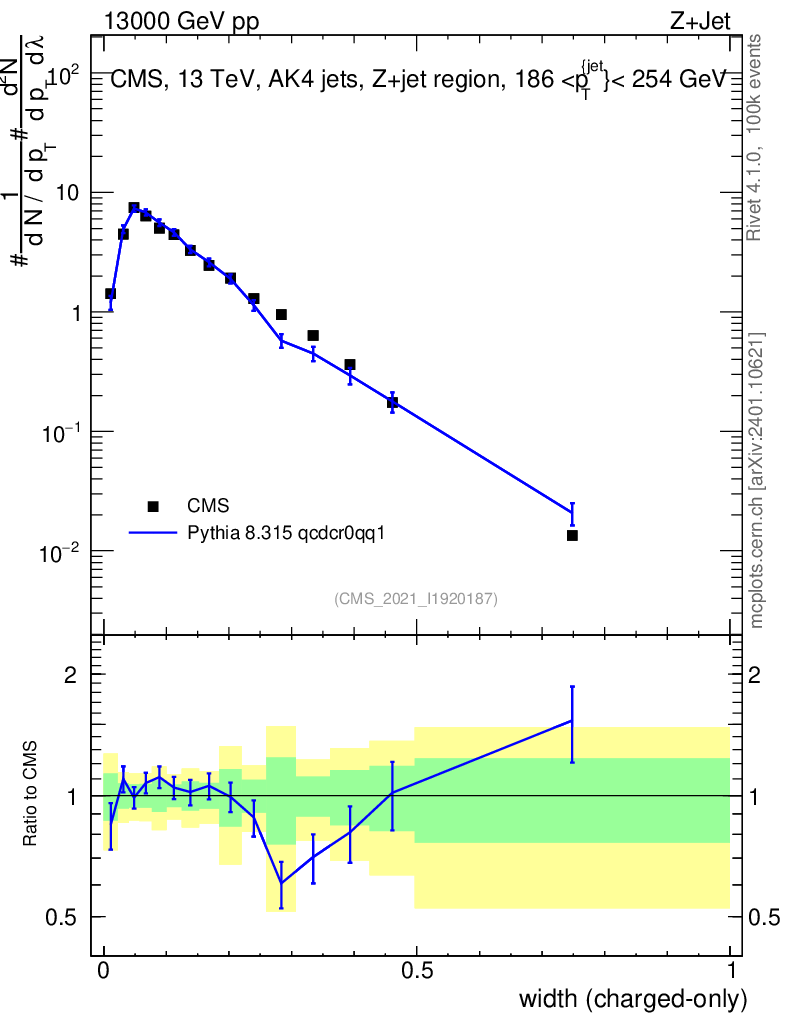 Lines: data, pythia8 8.315 qcdcr0qq1 |