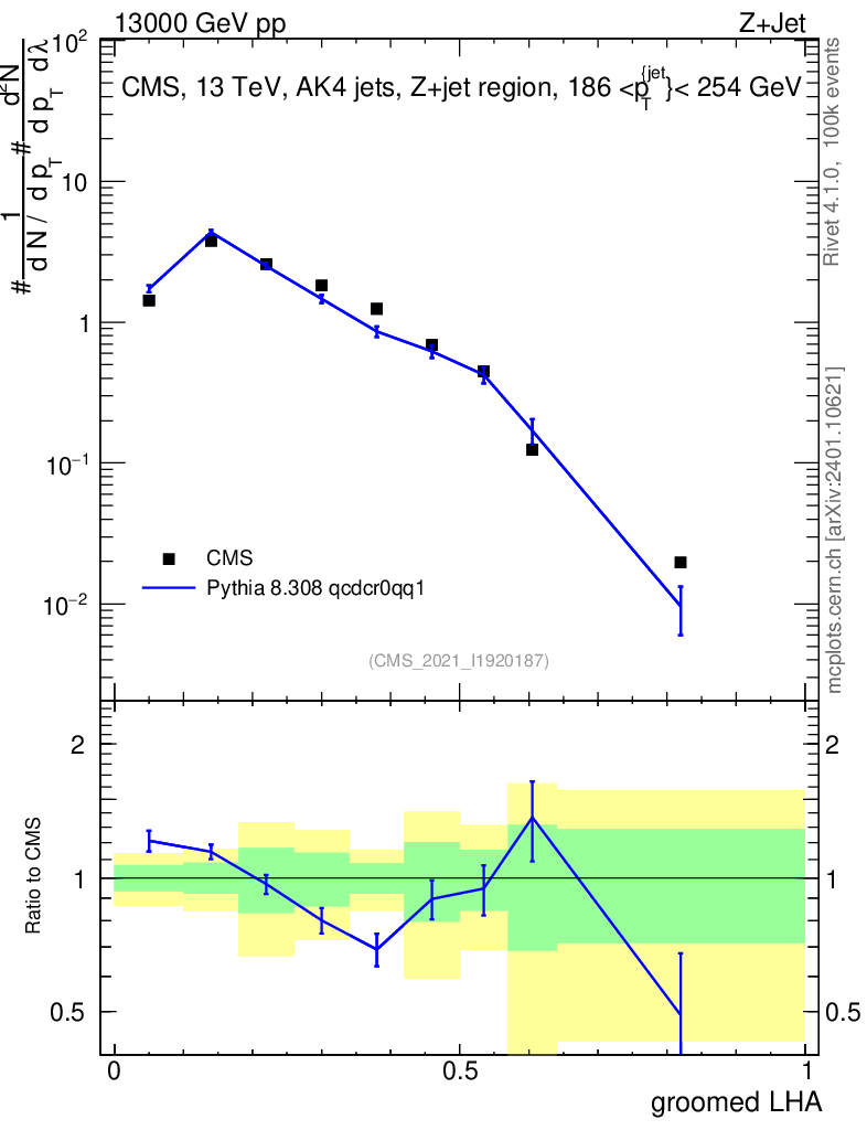 Lines: data, pythia8 8.308 qcdcr0qq1 |