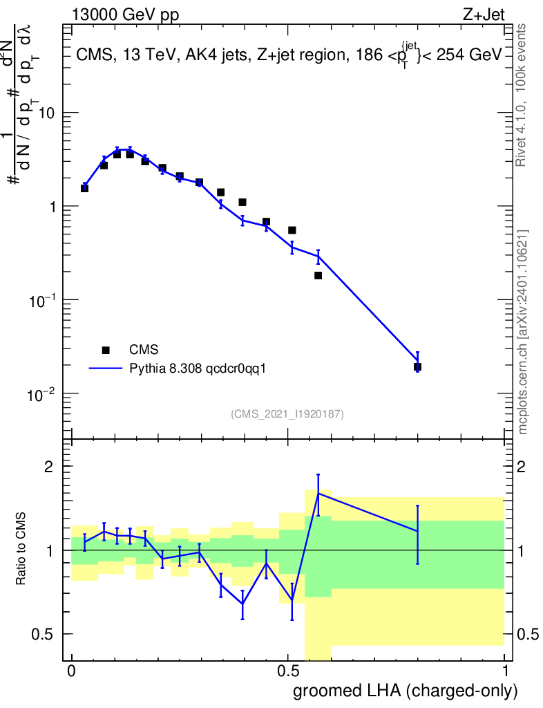 Lines: data, pythia8 8.308 qcdcr0qq1 |