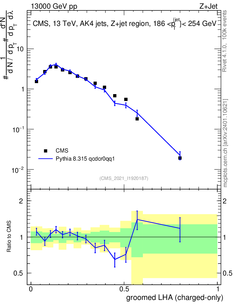 Lines: data, pythia8 8.315 qcdcr0qq1 |