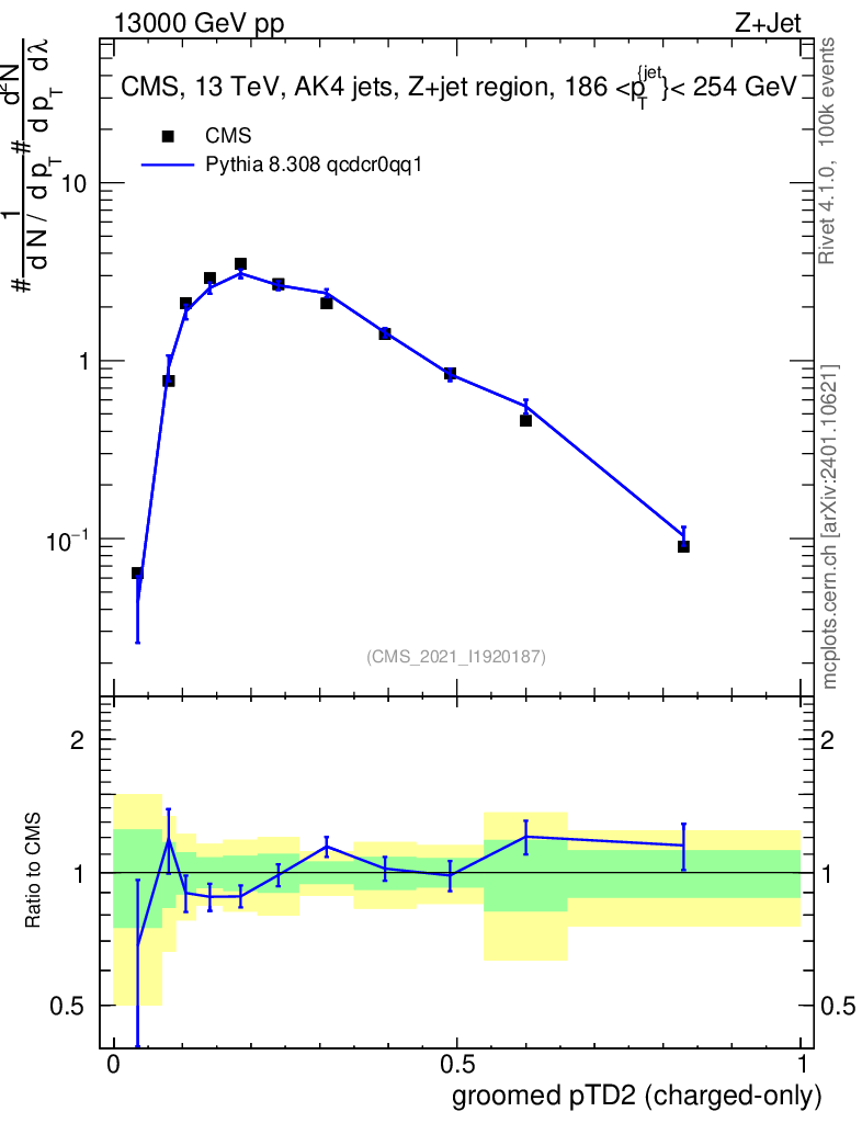 Lines: data, pythia8 8.308 qcdcr0qq1 |