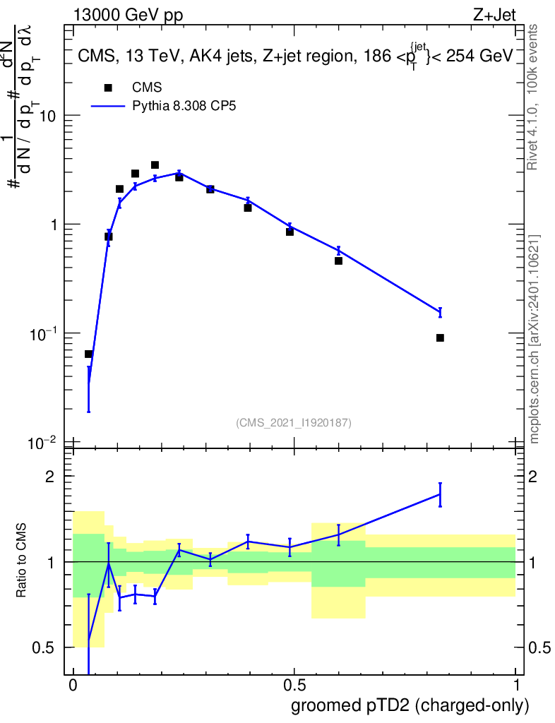 Lines: data, pythia8 8.308 CP5 |