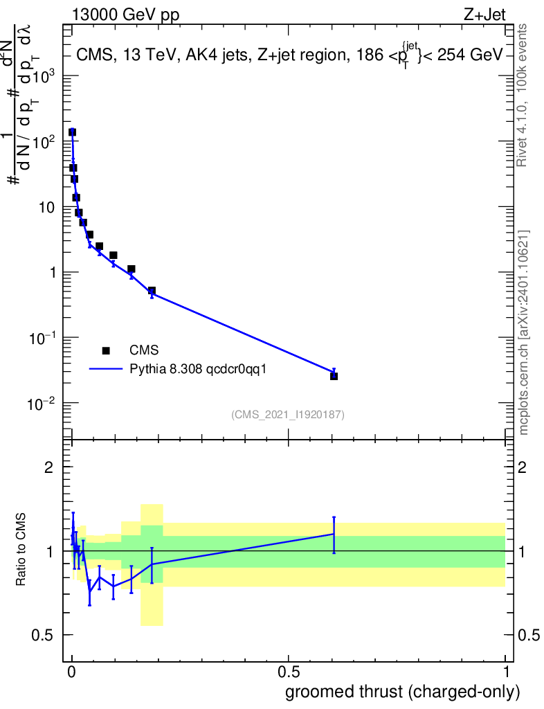 Lines: data, pythia8 8.308 qcdcr0qq1 |