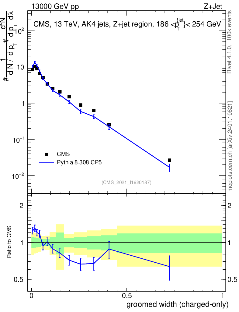Lines: data, pythia8 8.308 CP5 |