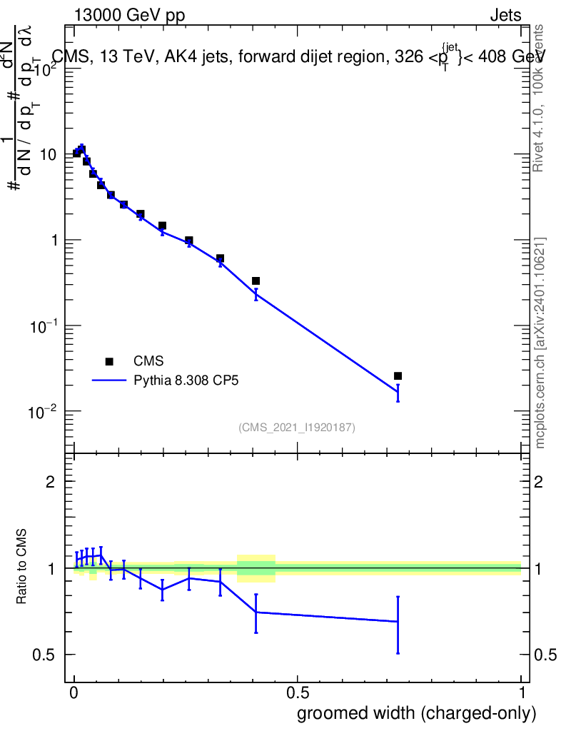 Lines: data, pythia8 8.308 CP5 |