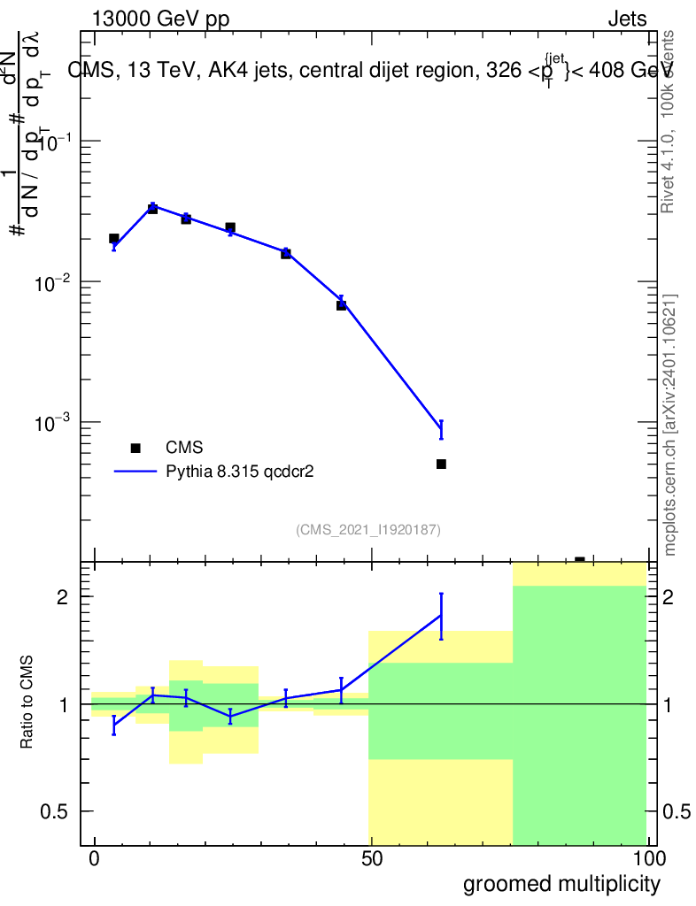 Lines: data, pythia8 8.315 qcdcr2 |