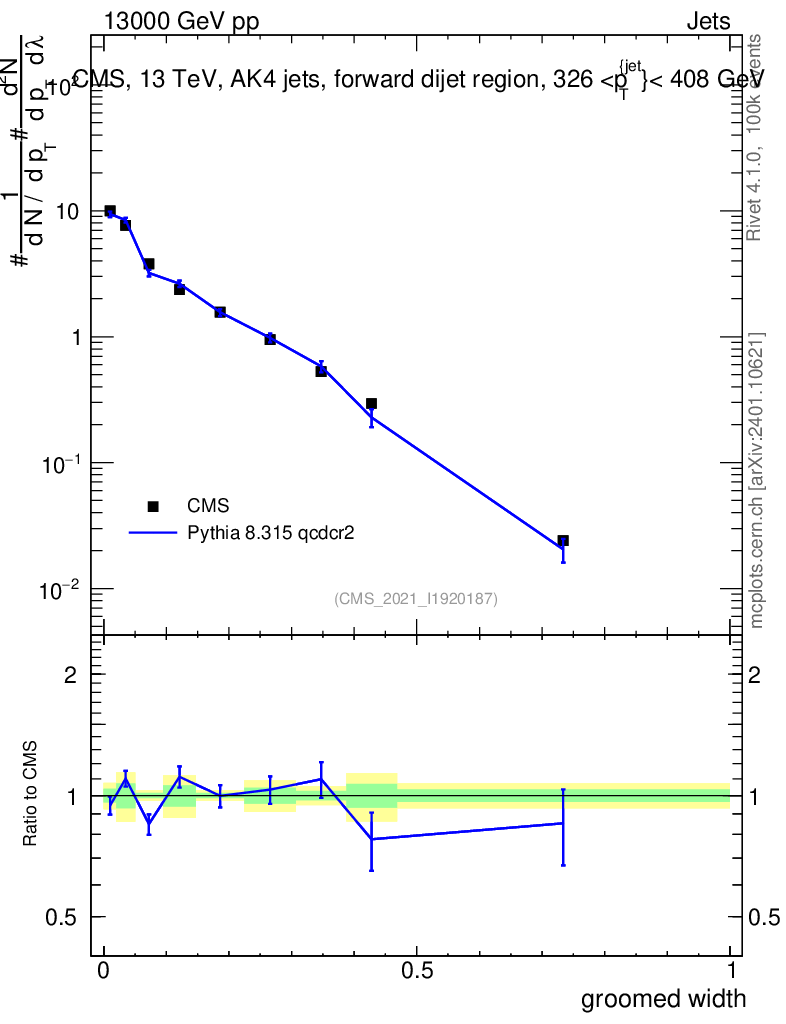 Lines: data, pythia8 8.315 qcdcr2 |