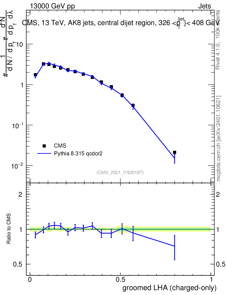 Lines: data, pythia8 8.315 qcdcr2 |