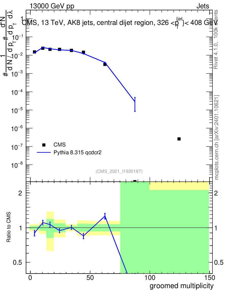 Lines: data, pythia8 8.315 qcdcr2 |