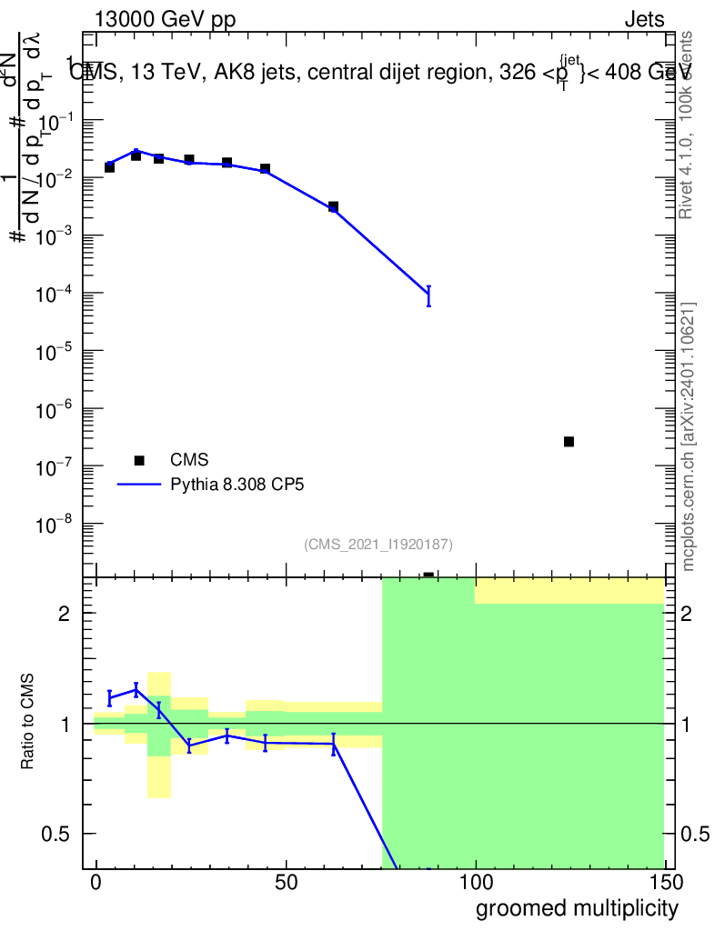 Lines: data, pythia8 8.308 CP5 |
