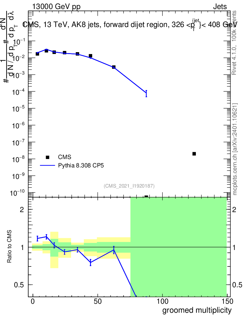 Lines: data, pythia8 8.308 CP5 |