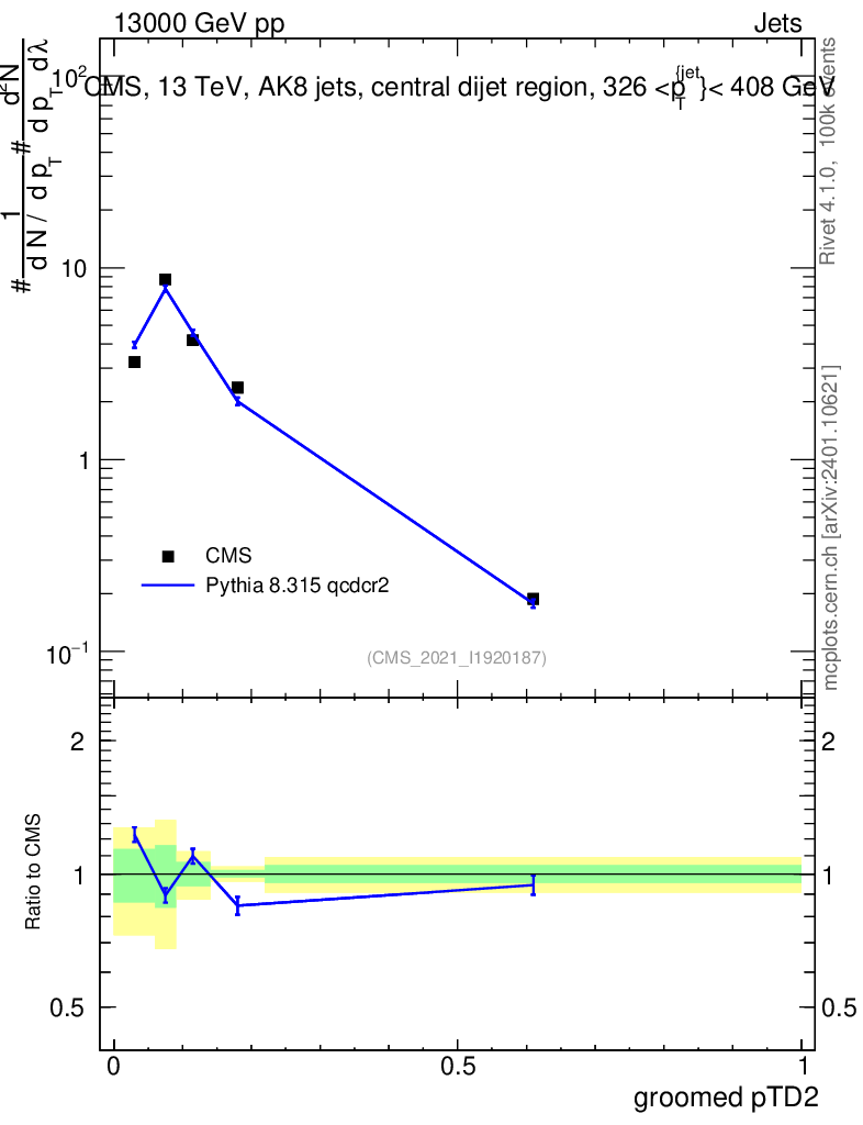 Lines: data, pythia8 8.315 qcdcr2 |