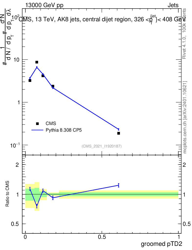 Lines: data, pythia8 8.308 CP5 |