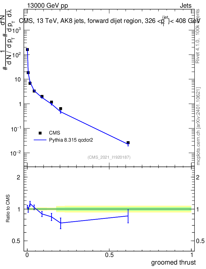 Lines: data, pythia8 8.315 qcdcr2 |