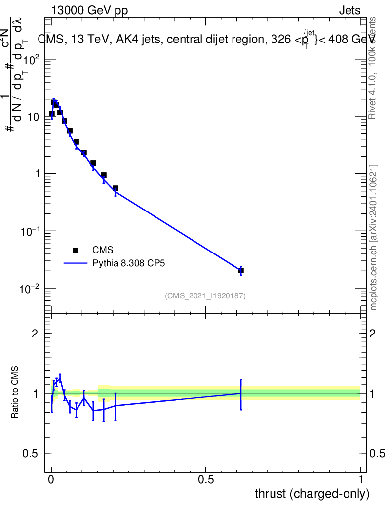 Lines: data, pythia8 8.308 CP5 |