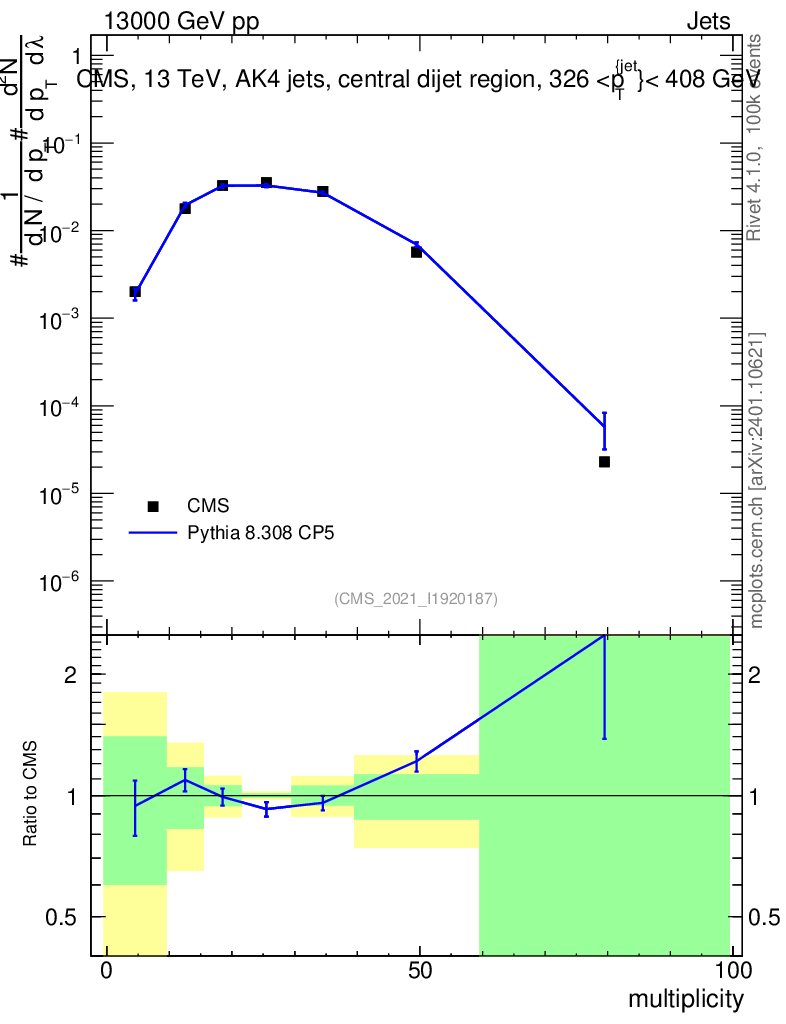 Lines: data, pythia8 8.308 CP5 |