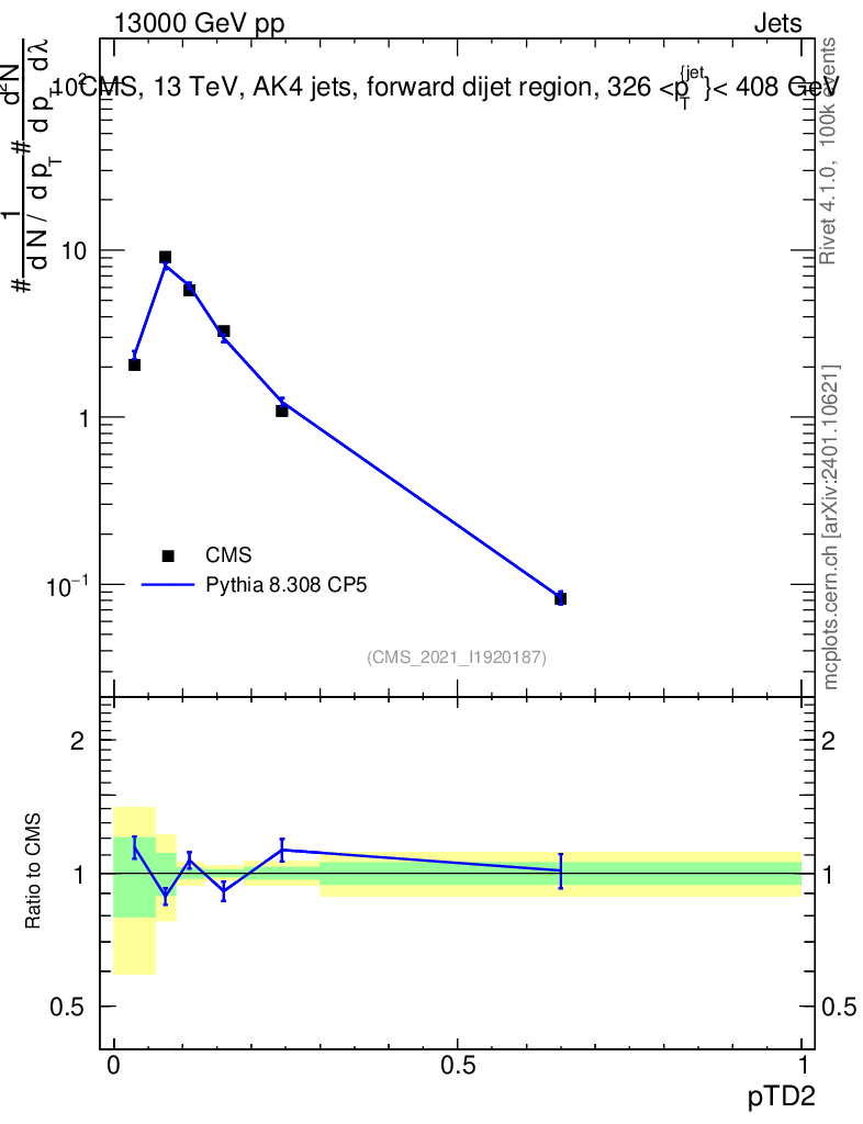 Lines: data, pythia8 8.308 CP5 |