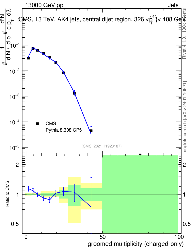 Lines: data, pythia8 8.308 CP5 |