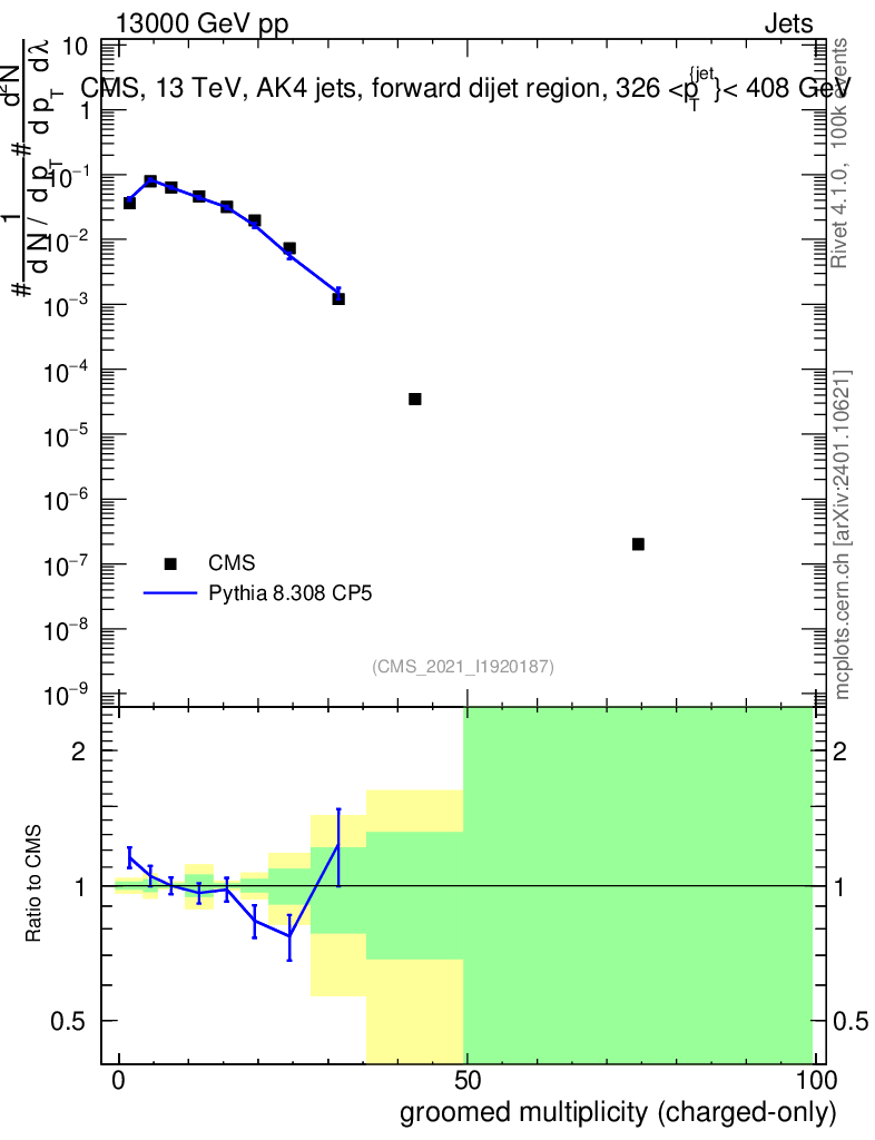 Lines: data, pythia8 8.308 CP5 |