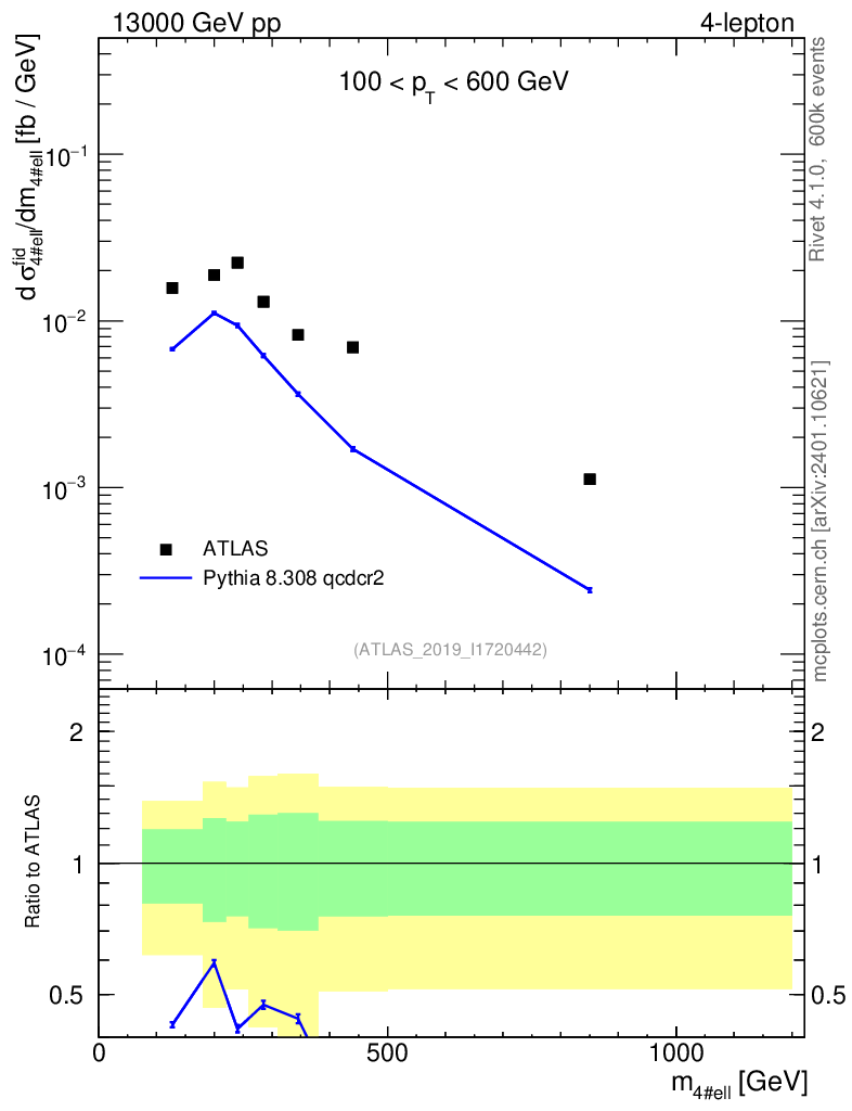 Lines: data, pythia8 8.308 qcdcr2 |