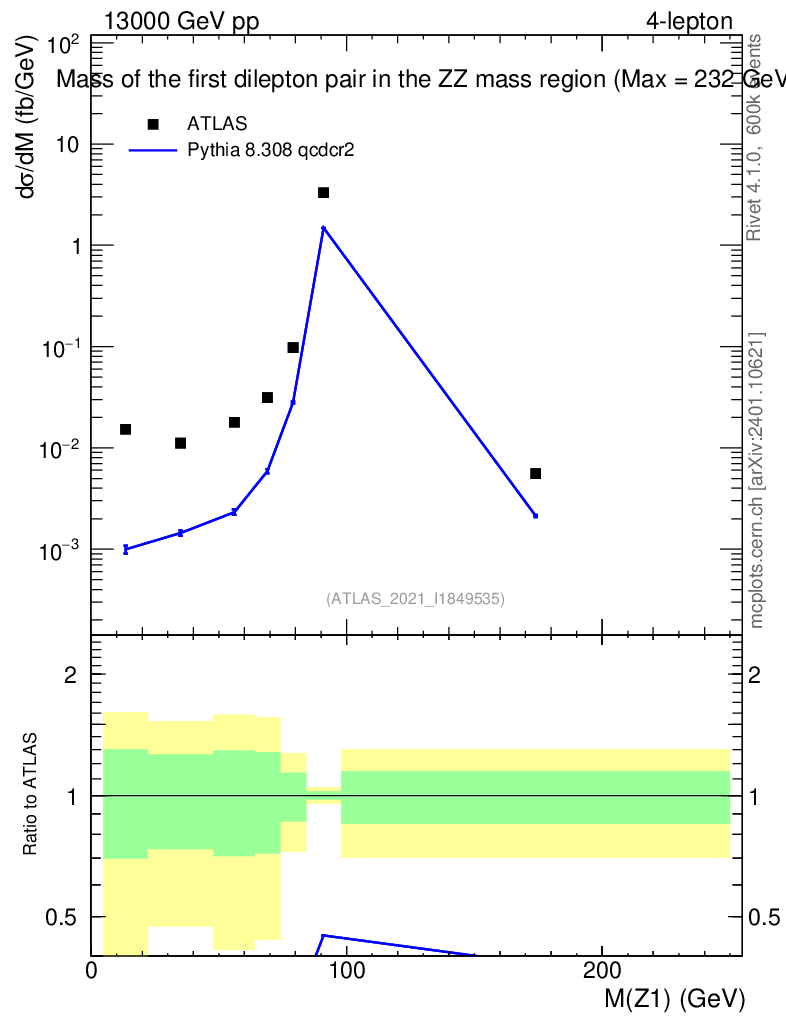 Lines: data, pythia8 8.308 qcdcr2 |
