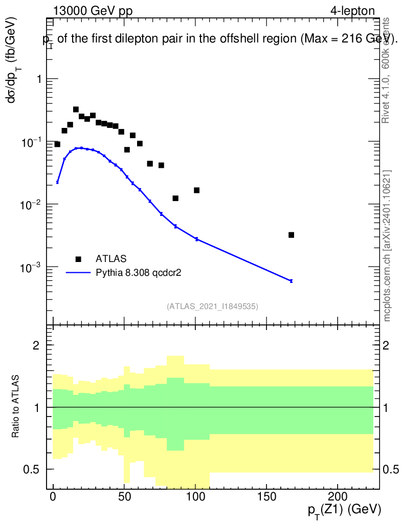 Lines: data, pythia8 8.308 qcdcr2 |