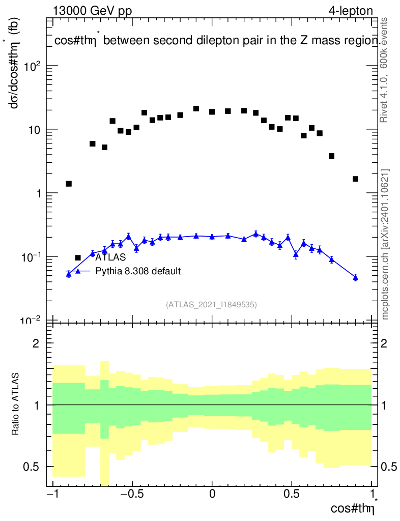 Lines: data, pythia8 8.308 default |